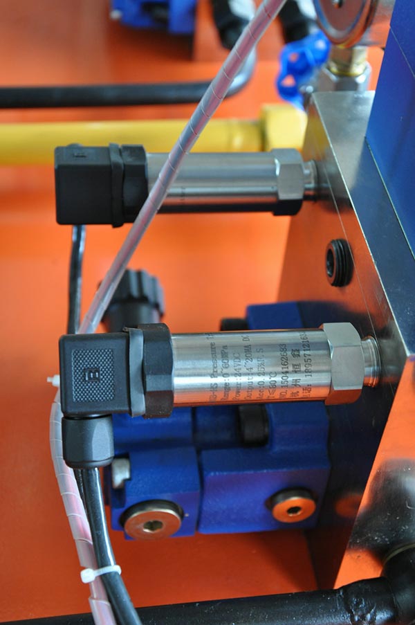 測(cè)試油缸部分的壓力變送器,可顯示油缸前進(jìn)與后退的壓力